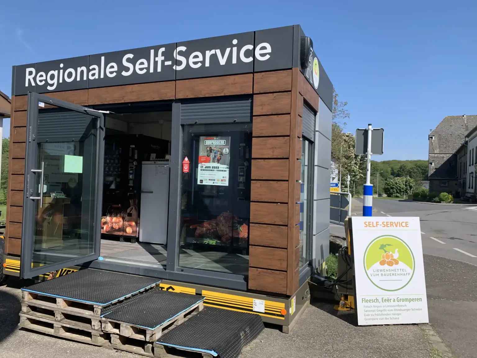 Zusätzlich zum Hofladen, der nur am Wochenende geöffnet hat, bieten wir unseren Kunden die Möglichkeit, unsere Produkte zu jeder Tages- und Nachtzeit in unserem Automaten erwerben zu können.